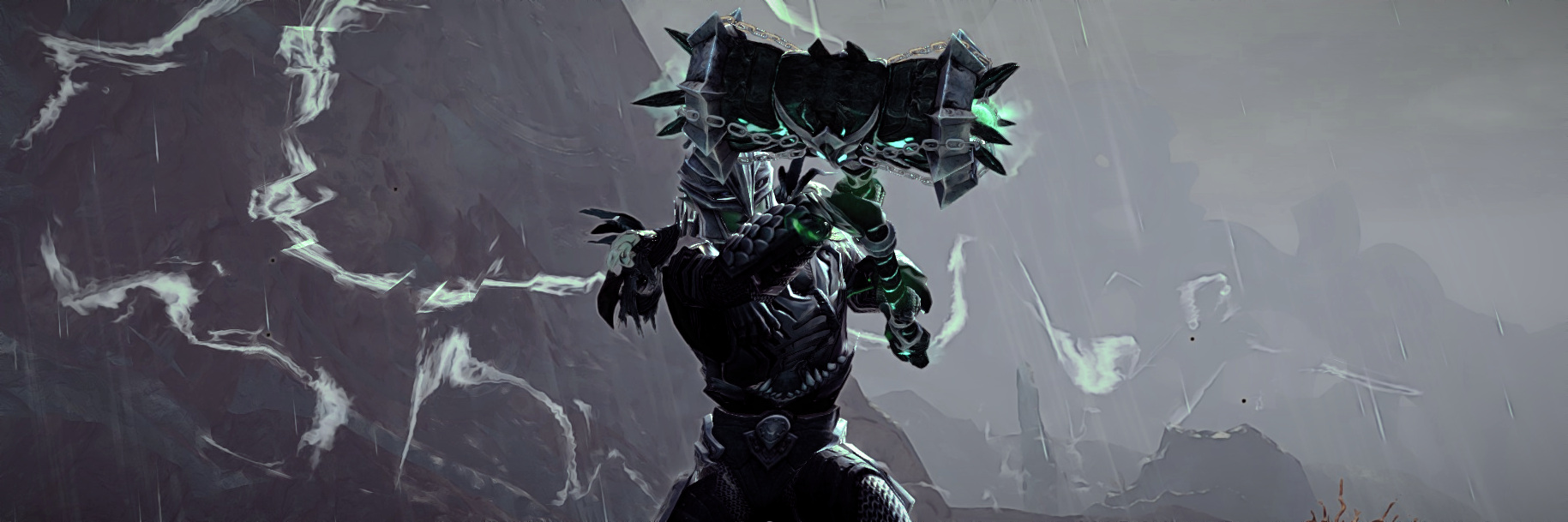 Metalowa zbroja, która równie głośno co młot krzyczy o upodobaniach właściciela do nekromanckiej estetyki, przynajmniej w przypadku wyposażenia.