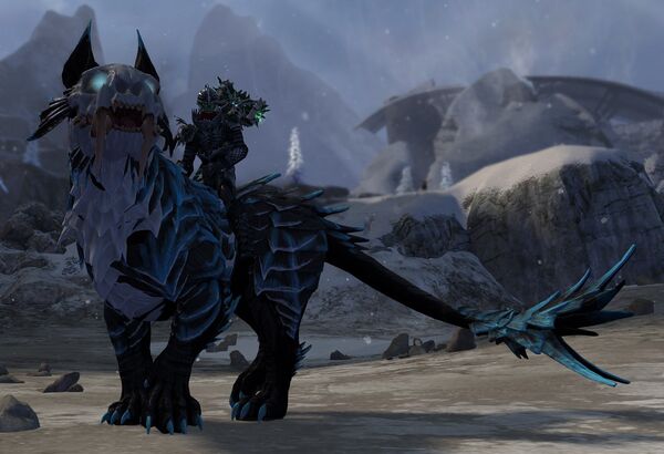 Dzięki szczodremu prezentowi od przyjaciela, od niedawna Anwyll jest właścicielem bestii, którą sam sprzedawca reklamował jako "kota rodem z Podświata". W rzeczywistości nie jest wiadomym dokładnie, skąd czworonóg pochodzi, poza generalnym stwierdzeniem "z Mgieł". Czacha, jak nazwał zwierza Anwyll, przypomina tygrysa szablozębnego, pokrytego niemalże w całości łuskami lub zrogowaciałą skórą. Wyjątek stanowi łeb z twardej kości, przypominający wyraźnie nieokrytą czaszkę - o błękitnych oczach z pionowymi źrenicami, dużych uszach i kłach nieosłoniętych wargami (przez co w trakcie spożywania posiłków wygląda dość groteskowo). Poza ostentacyjnie prezentowanym zestawem zębów, Czacha robi groźne wrażenie także dzięki ostrym pazurom i rozchodzącemu się na trzy twardemu ogonowi, którego uderzenie zdecydowanie nie należy do najprzyjemniejszych. Potężna budowa jego ciała wskazuje zdecydowanie na przewagę siły nad szybkością czy zwinnością. Kociak ma umaszczenie czarno-biało-błękitne, zdaje się nie zwracać wielkiej uwagi na zimno i być może rozważałby zjedzenie swojego nowego jeźdźca, gdyby ten nie był rośliną. Czacha jest bowiem mało delikatnym zwierzakiem, o wielkim apetycie na mięso, z którego niemalże wyłącznie składa się jego dieta, i o niewielkiej tolerancji do robienia rzeczy, na które nie ma ochoty. Z tego też powodu nie jest osiodłany ani nie ma żadnego rodzaju wodzy, którymi dałoby się nim sterować. Wydaje się bardziej skory do współpracy z Anwyllem, kiedy ten odziany jest w swoją łuskowo-czaszkową zbroję, być może traktując go wtedy bardziej jak część stada, nieco upośledzoną, ale jednak.