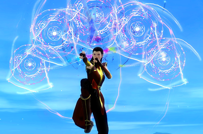 Requiem Cho otacza sie ochronną barierą a zgromadzone ostrza zaczynają wirować w około zadając spore obrażenia przeciwnikom.