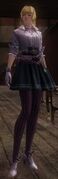 Jej bronią białą z wyboru jest rapier, którym uczy się walczyć. Dla dodatkowego efektu potrafi pokryć ostrze strażniczym ogniem, który podpala przeciwników przy niewielkim kontakcie. Sojusznikom zaś nie robi krzywdy – ogień, bo ostrze rapiera to już inna sprawa.
