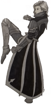 • Jest tajnym agentem Lśniących Ostrzy, o czym wiedzą jedynie inni przedstawiciele tejże organizacji. Obecnie nie nosi przy sobie żadnych dowodów przynależności do grupy.