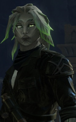 Nool to niewysoka asura o długich, bardzo ciemno-zielonych włosach spiętych w wysoki kucyk Ma bladą cerę w nieco ciemniejsze cętki. uszy asury są duże i rozłożyste, jednak to nie one zwracają najwięcej uwagi - a oczy, duże, intensywnie zielone, wyglądające jak jadeitowa otchłań wpatrująca się martwo w rozmówcę. Asura ma długie rzęsy niczym porcelanowa laleczka, mały, różowiutki nos oraz wąskie usta, zazwyczaj wykrzywione lekko kącikami w dół. Asura nie okazuje emocji na twarzy, do tego nawet nie da się stwierdzić, czy jest samczykiem, czy samiczką - piskliwy głos bez wyrazu nie pomaga w ustaleniu tego faktu. Nool jest nekromantą, absolwentem kolegium Statyki. Doskonale zna się na asurańskiej inżynierii oraz systemach obronnych, dodatkowo potrafi pilotować oraz uzupełnia inżynieryjną wiedzę w tych rejonach, w których Maghiran radzi sobie gorzej. W zespole tworzą naprawdę solidny duet. Nool nie mówi o sobie za dużo, zaś w załodze jest od samych jej początków. Niewielu zatem zna genezę, skąd pojawił się w jej szeregach. Nool z charakteru jest opanowany, spokojny, a jak na asurę doprawdy miły, czasami wręcz wykazuje nadopiekuńczość względem załogi. | |