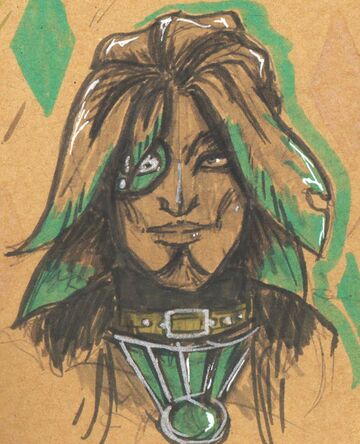 Merman to kolejny, wielki kloc w załodze Zmartwychwstałej. Szeroki, wysoki norn o ciemnej karnacji i neonowo-niebieskich oczach i włosach kolorystycznie wybija się na tle reszty ekipy. Lubi pstrokate kolory, do tego zafascynowany jest Eloną oraz morzem. Na ciele posiada wytatuowane, błękitne fale, zaś nietypowy kolor swoich długich i i zadbanych włosów uzyskuje dzięki regularnemu farbowaniu. Merman jest elementalistą przede wszystkim wody, w drugiej kolejności wiatru. Uwielbia wszystko, co związane z żeglugą, śpiewem i dobrą zabawą. Merman to wolny duch, zazwyczaj beztroski i radosny, jednak niech nikogo nie zwiedzie ten radosny ton - kiedy trzeba, Merman nie zawaha się podjąć drastycznych i bezpośrednich środków. Często stosuje bardzo nornowe rozwiązania - siłowe. Zapytany, dlaczego jest w załodze przemytników twierdzi, że to przednia zabawa, a z Maghiranem połączyła go miłość do poezji. Poproszony o pomoc prawie nigdy nie odmawia, a wszystkich traktuje od razu jak koleżków i koleżaneczki - nastawienie czasem zmienia w zależności od tego, jak znajomość się potoczy. | |