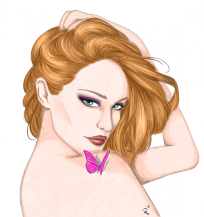 Zaskoczeniem nie jest fakt, że jest to niska kobieta o rudych włosach i ciemno turkusowych oczach. Charakterystycznie usta maluje na czerwono co dodaje jej nieco ostrzejszego wyglądu. Włosy niegdyś długie, teraz ścięte do ramion i zawsze starannie ułożone. Ma ona kobiecą figurę z odpowiednimi wcięciami czy wypukłościami. Ubiera się dość odważnie odsłaniając jak na niektóre gusta zbyt dużo. Jest dość atrakcyjna i nie boi się czasem z tego skorzystać w celach flirtu. Raczej nie posiada ona żadnych nawet lekko zarysowanych mięśni ani widocznych blizn, choć kto wie, czy ich nie ukrywa pod jakimiś iluzjami czy kosmetykami. Jej chód raczej nie należy do tych super zgrabnych, powabnych czy innych kojarzących sie z kobiecością, choć jak się postara to bioderkami ładnie umie zakołysać. A tak niech nie zmyli nikogo ładny gorsecik czy spódnica, to najzwyklejsza pod słońcem dresiara w ładnym opakowaniu.