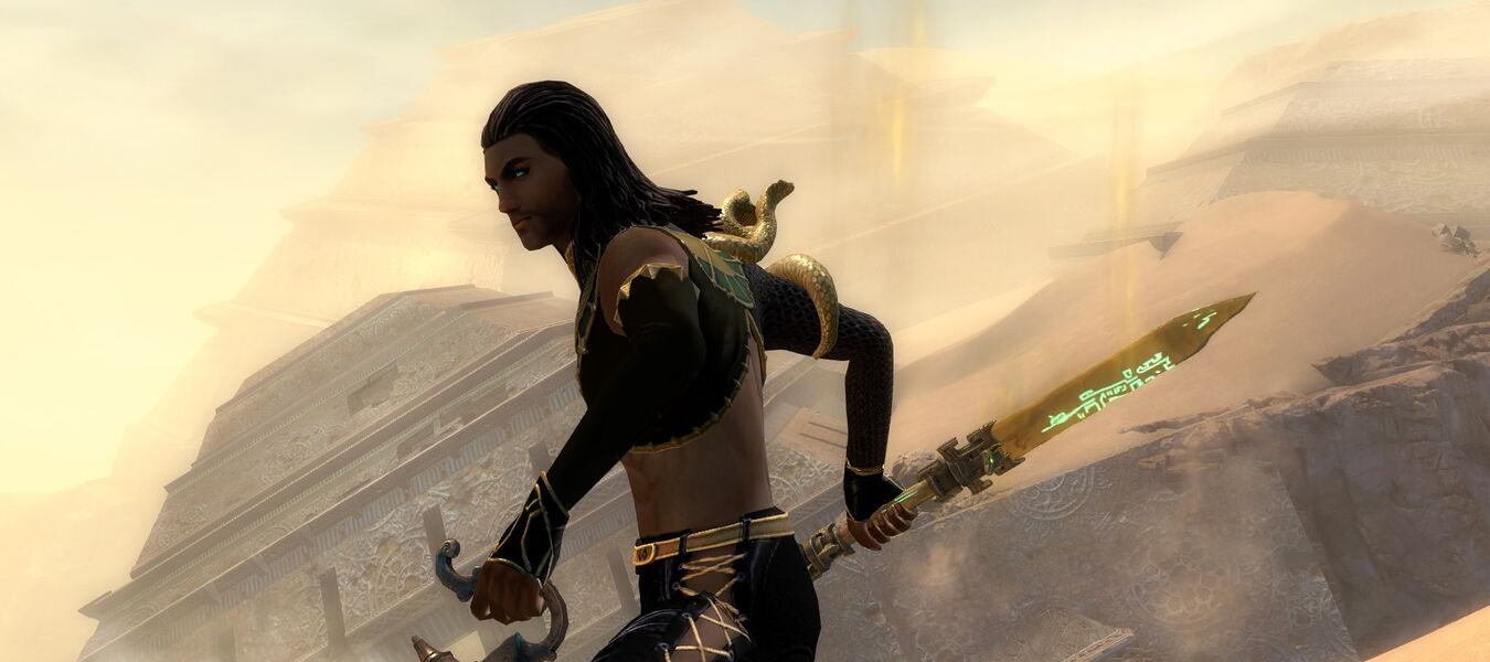 Zazwyczaj Setesh uzbrojony jest w sztylet, którego ostrze skąpane jest w piaskowej magii, która daje wrażenie nieustannie sypiącego się z niego piasku. W dużej mierze jest to broń magiczna, dlatego podczas wykonywania zaklęć, na ostrzu jaśnieją zielonkawe znaki, zapisane w języku staroelońskim. Nie są one niczym innym, jak inkantacją ładującą magię z otoczenia. |