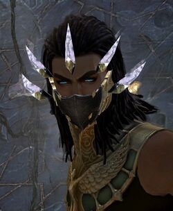 Dość często można zauważyć, że Setesh nosi tajemniczy lewitujący przed jego czołem kryształek okuty złotym metalem. W praktyce jest to maska, która rozkłada się podczas przepływu magii, chroniąc fizycznie dolną część twarzy nekromanty, a także magicznie tworzy barierę wokół jego głowy i szyi. |