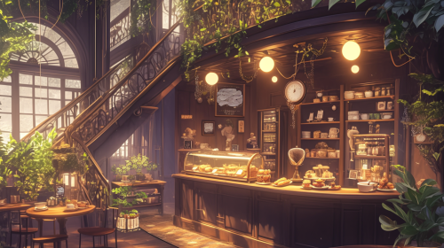 Dalej za ladą widnieją wysokie regały z wystawionymi rozmaitymi filiżankami i imbryczkami prosto z Canthy (które można również zakupić) oraz z poustawianymi alkoholami, puszkami z kawami i z rzędami rzemieślniczych czekolad. Za regałami jest dyskretne przejście na zaplecze, ale tam zapewne nie zapuszcza się nikt poza obsługą.<br> | |||